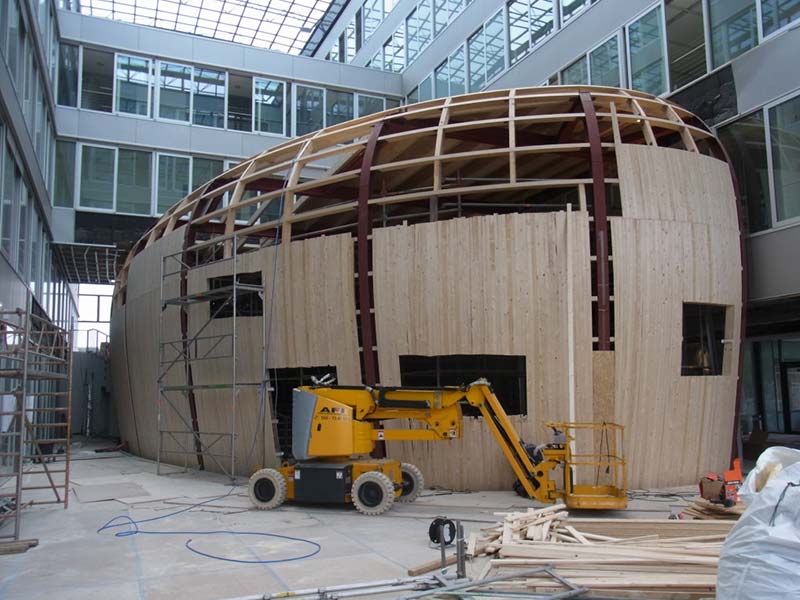 Einbau eines Auditorium Maximum mit 299 Plätzen in den Innenhof der Kühne Logistics University in Hamburg Hafencity. Sowie diverse weitere Einzelmaßnahmen.