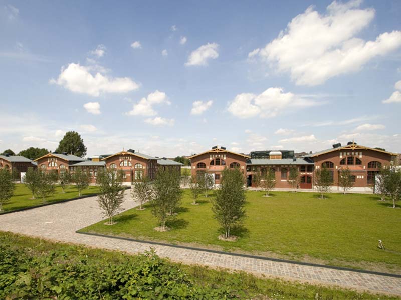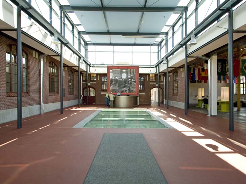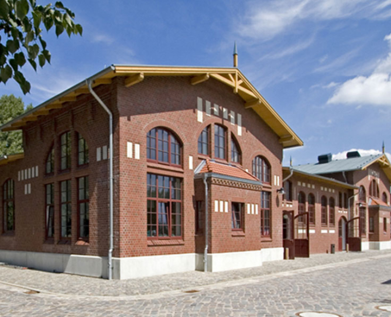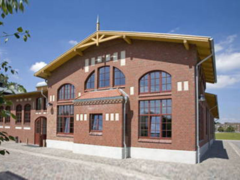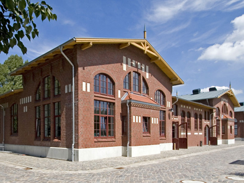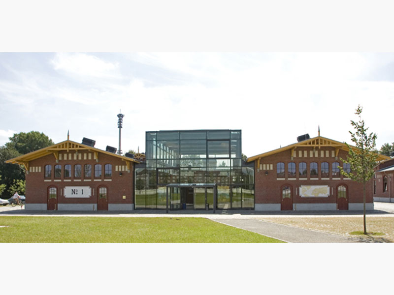 Neubau von drei den historischen Atbauten nachempfundenen Museumsgebäuden und einer verglasten Stahleingangshalle.