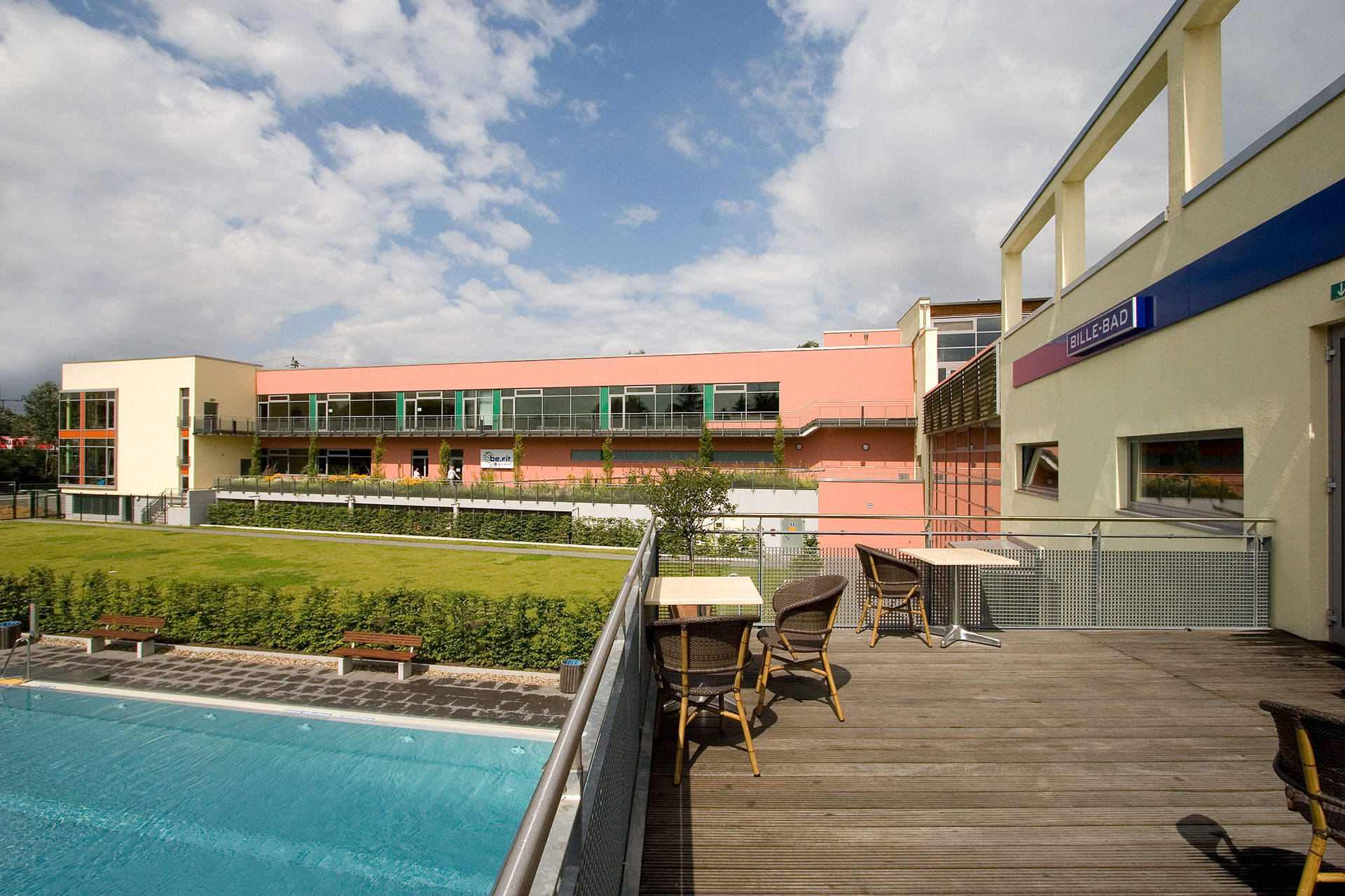 Neubau eines Regionalbades mit Sauananlage, Fitness-Center und Tiefgarage für die Bäderland Hamburg GmbH mit ca. 18.000 m² BGF. Die Baukosten betrugen ca. 15 Mio €.