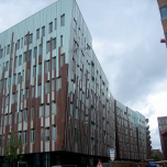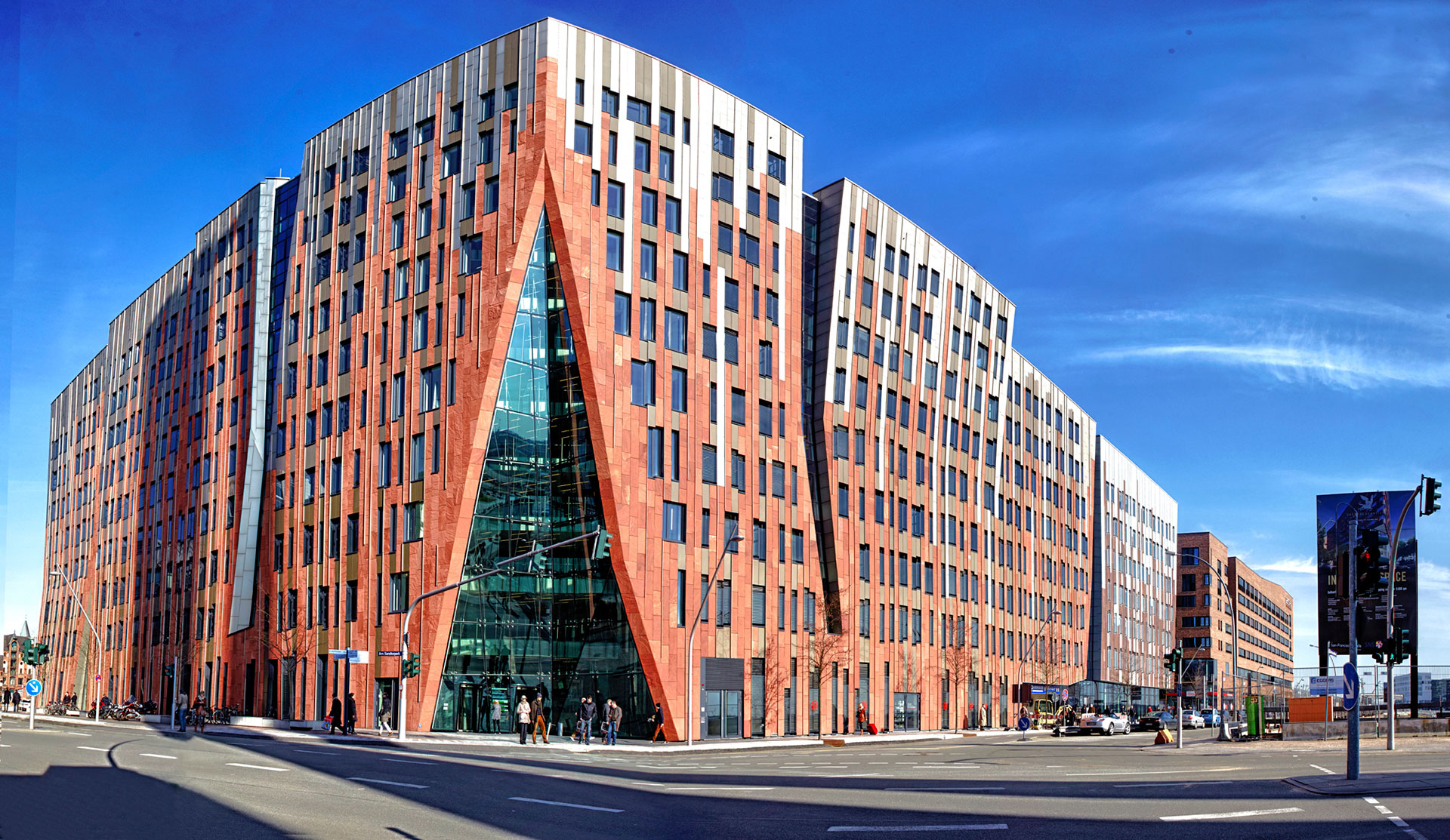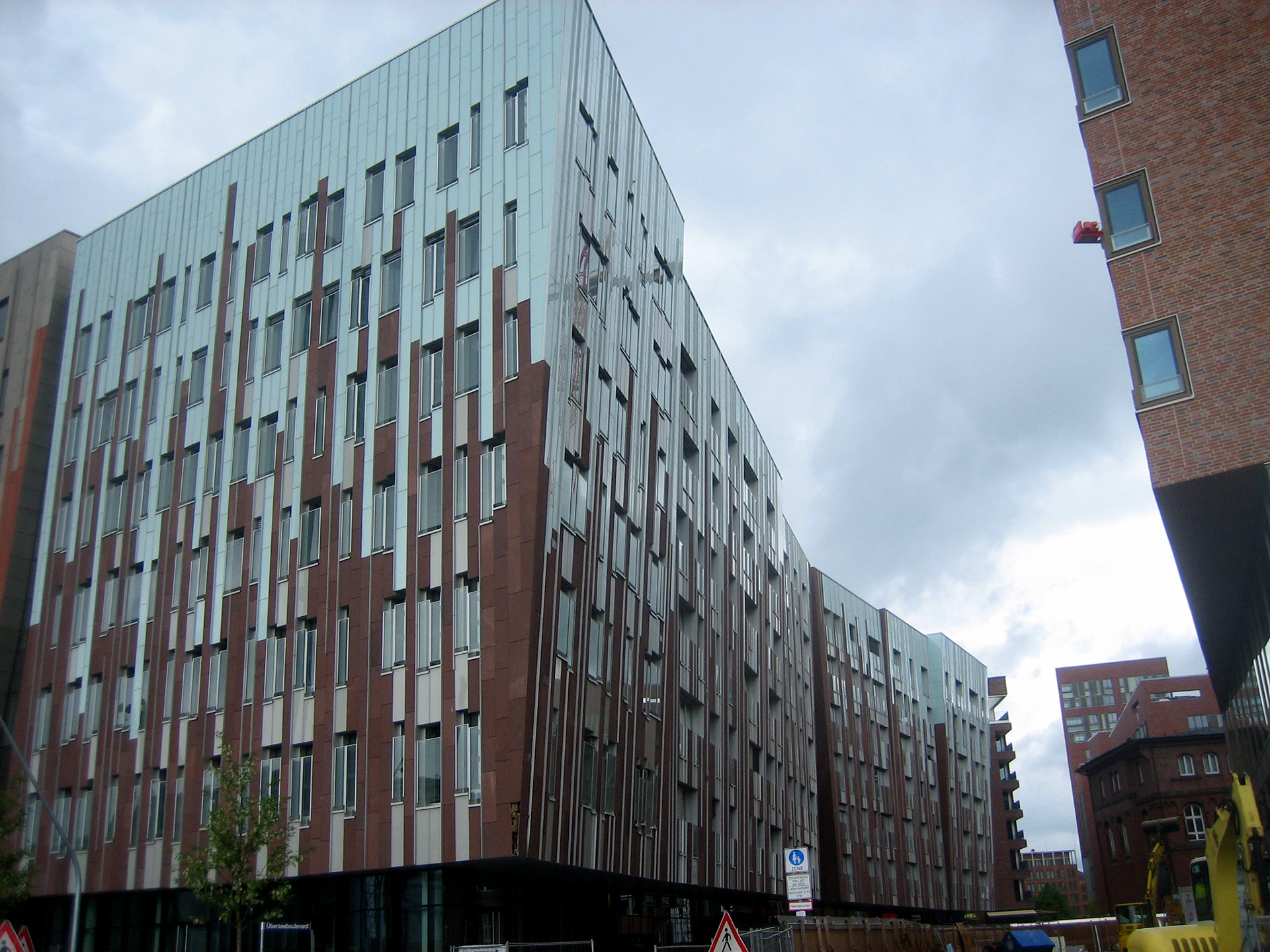 Bei dem Bauvorhaben handelt es sich um den Neubau von zwei Mehrfamilienhäusern mit jeweils sechs und einem Bürogebäude mit neun Obergeschossen. Die einzelnen Teile sind durch Fugen voneinander getrennt und postieren sich um einen Innenhof herum, wobei der gesamte Komplex ein Fünfeck mit einer einspringenden Ecke an der Ostseite beschreibt, an der die Obergeschosse über dem Erdgeschoss um etwa 2,0 m bis 3,5 m auskragen. Die Grundabmessungen betragen in etwa 100 m x 100 m.