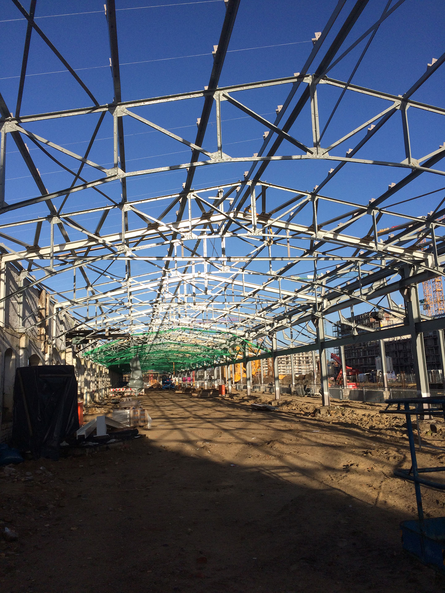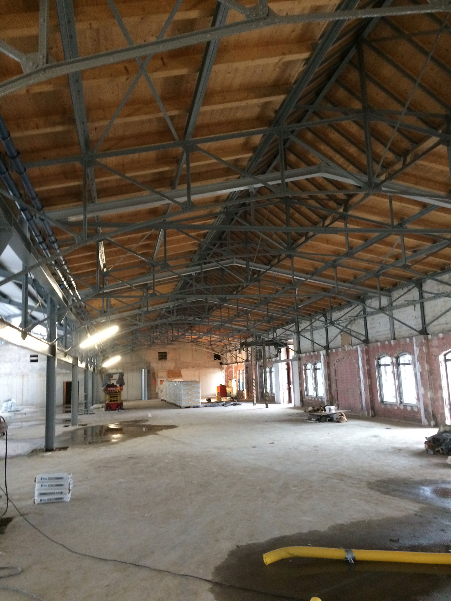 Die Kopfgebäude wurden für die Nutzung als Büro, bzw. Gastronomie umgebaut. Hierzu wurden Grundrisse geändert, Wände versetzt, Konstruktionen ergänzt und saniert, z.B. starke Rissbildungen usw.