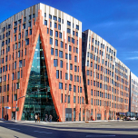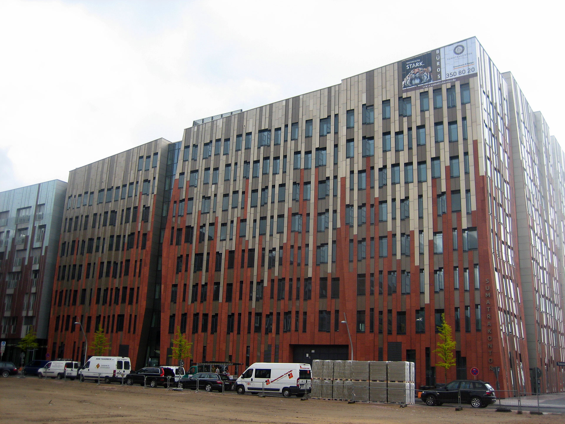 Bei dem Bauvorhaben handelt es sich um den Neubau von zwei Mehrfamilienhäusern mit jeweils sechs und einem Bürogebäude mit neun Obergeschossen. Die einzelnen Teile sind durch Fugen voneinander getrennt und postieren sich um einen Innenhof herum, wobei der gesamte Komplex ein Fünfeck mit einer einspringenden Ecke an der Ostseite beschreibt, an der die Obergeschosse über dem Erdgeschoss um etwa 2,0 m bis 3,5 m auskragen. Die Grundabmessungen betragen in etwa 100 m x 100 m.