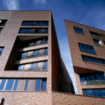 Neubau von drei Mehrfamilienhäusern mit Gewerbeeinheiten im Erdgeschoss und einem Hotel mit sieben Obergeschossen. Alle Gebäude stehen auf einem gemeinsamen durchgehenden Sockelgeschoss Die Grundabmessungen betragen in etwa 70 m x 70 m.
